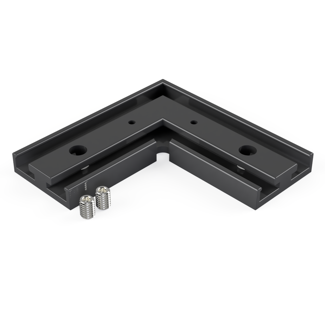 Der CON-N2 Verbinder 90° verbindet zwei LED-Aluprofile der Exo-N2-Serie im rechten Winkel