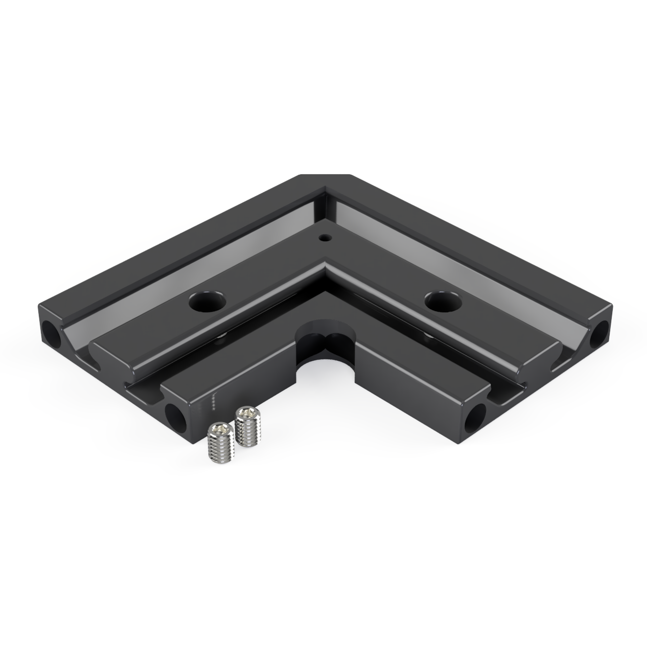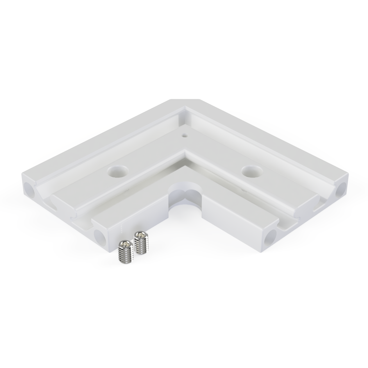 Der CON-N3 Verbinder 90° verbindet zwei LED-Aluprofile der Exo-N3-Serie im rechten Winkel