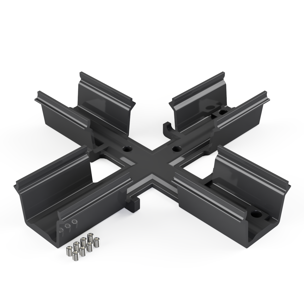 Der CON-TI1 Verbinder X-Stück erlaubt Kreuz-Abzweige innerhalb der Exo-TI1 LED-Aluprofilserie