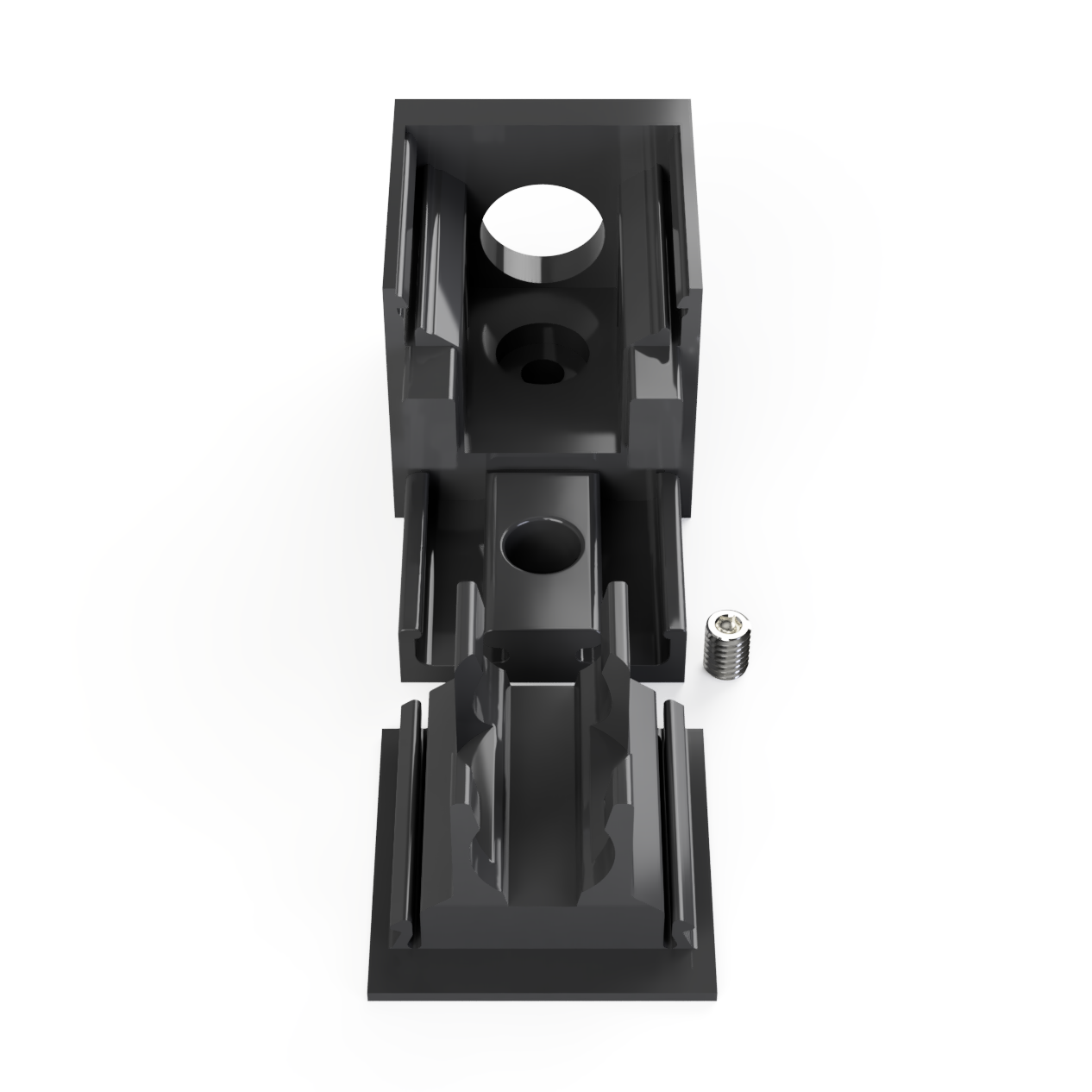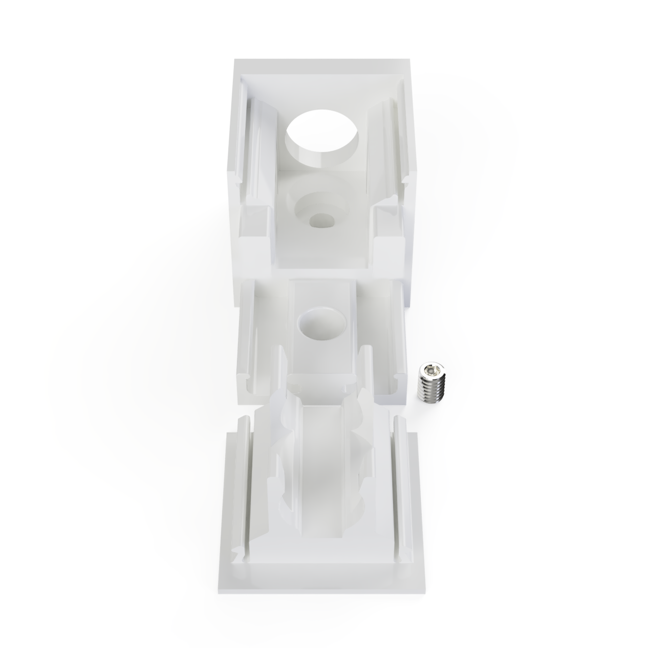 Kabelführung nach hinten aus dem Profil. Das Bauteil besteht aus robustem PETG, ist für