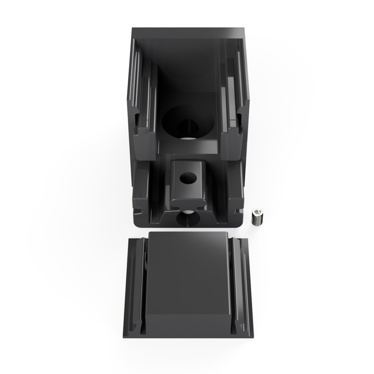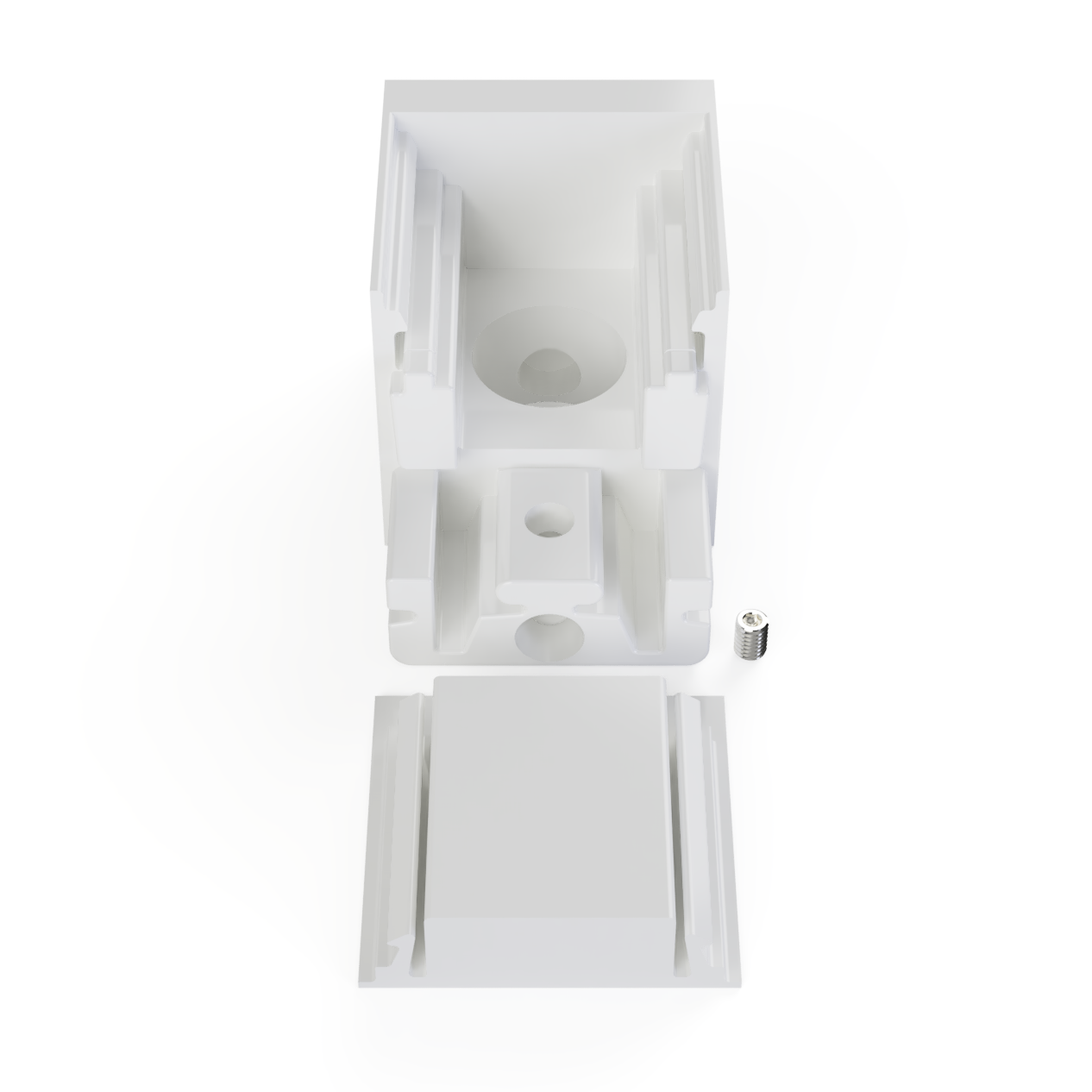 Kabelführung nach unten aus dem Profil. Das Bauteil besteht aus robustem PETG, ist für