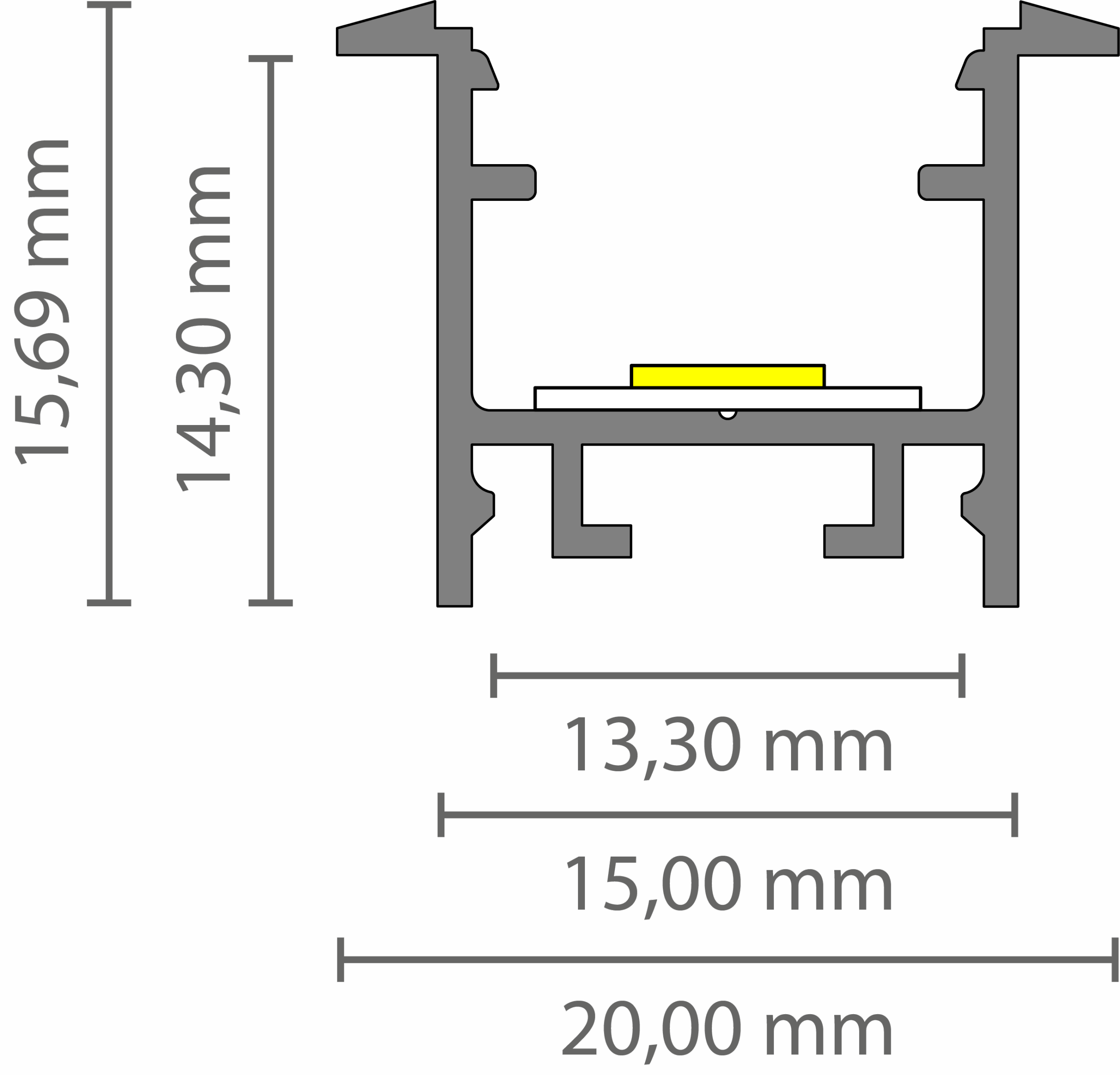 2 000 mm L; maximale Breite 15 mm; maximale Höhe o. Cover 15,69 mm |