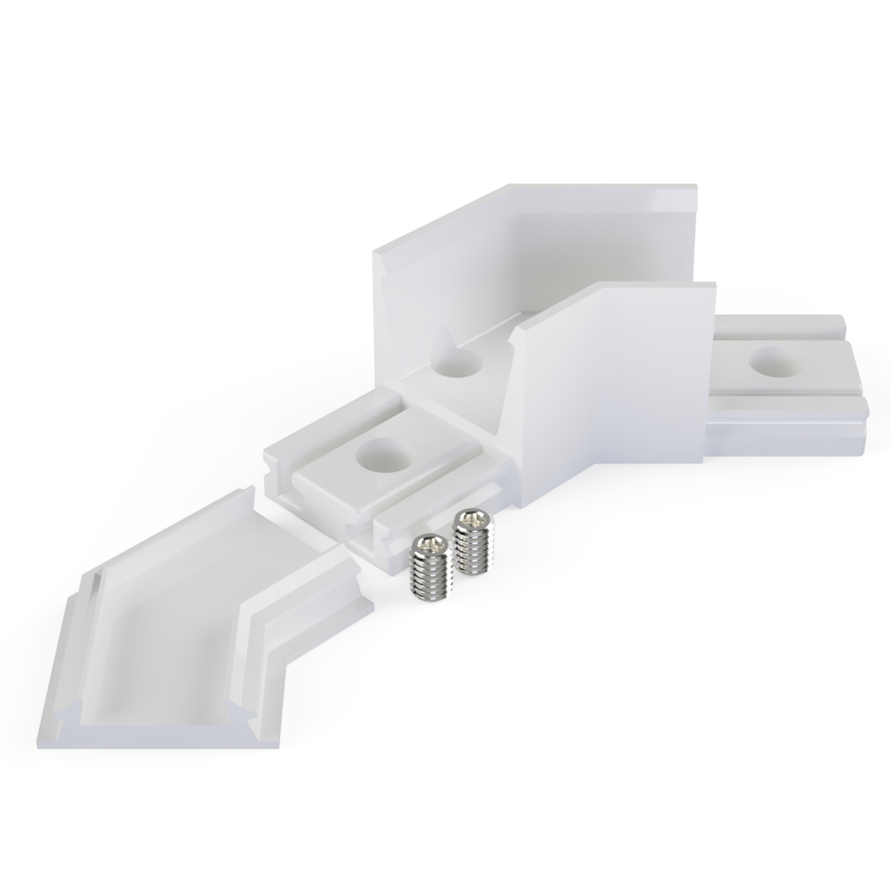 Der VMD-A2 Eckverbinder 135° verbindet zwei Exo-A2 LED-Aluprofile in einem präzisen