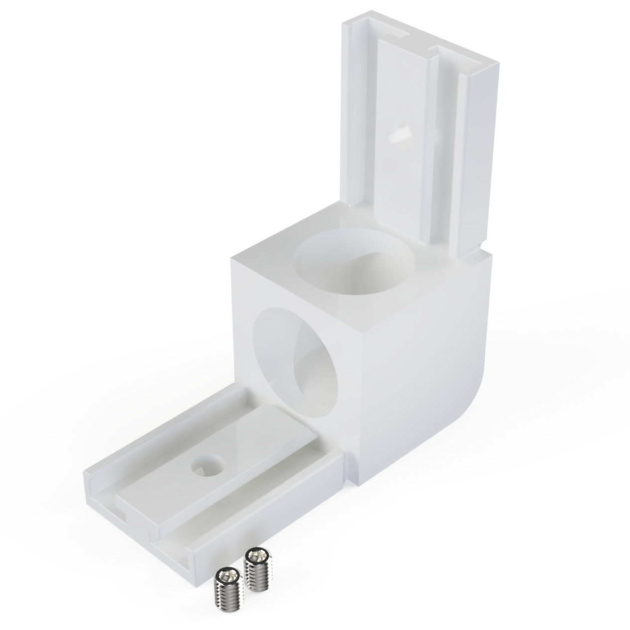 Der VMD-N2 Inneneckverbinder 90° verbindet zwei Exo-N2 LED-Aluprofile über eine innere Ecke in